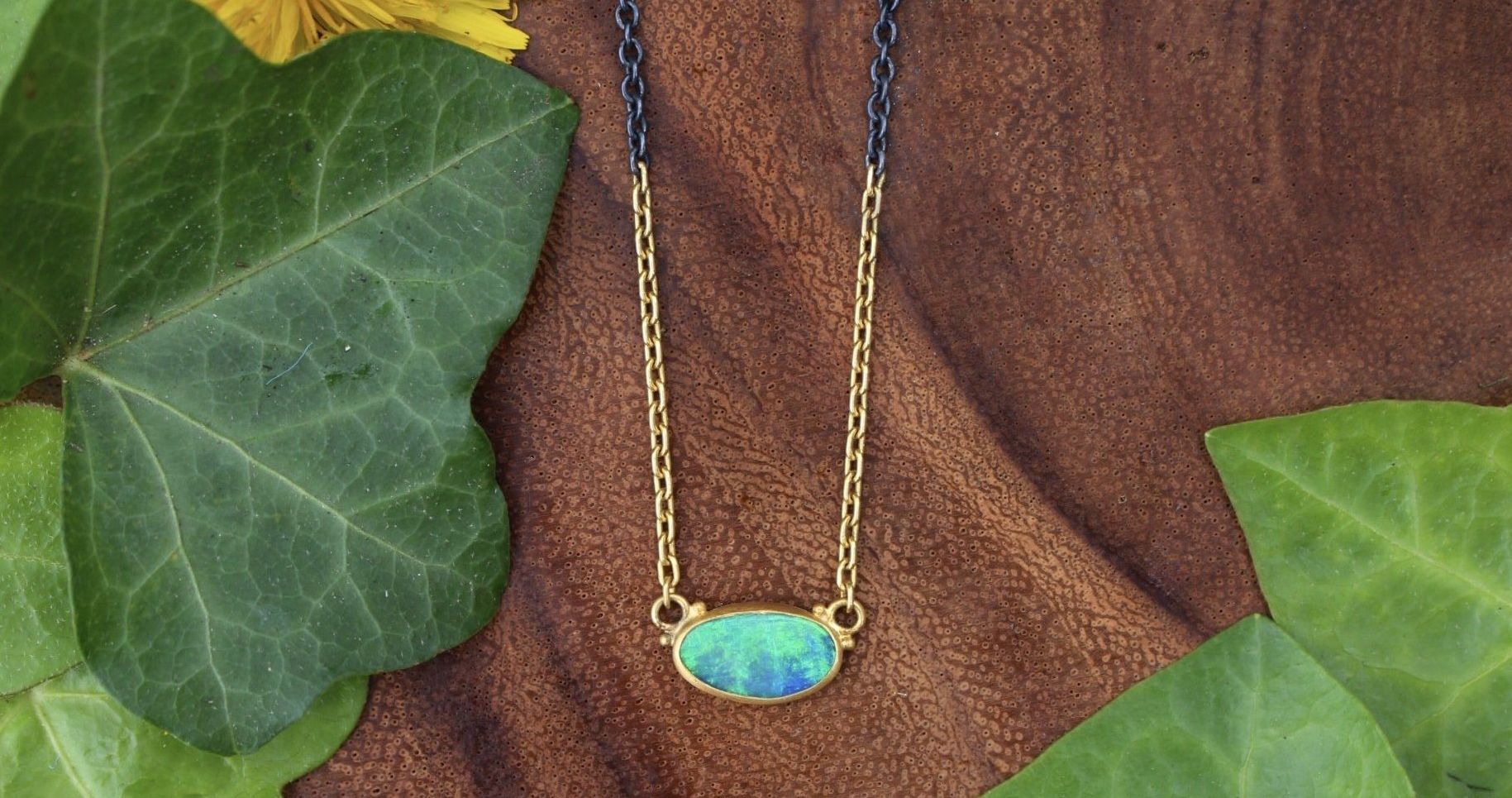 24k yellow gold with oxidized sterling silver chain 2.08 ct opal half 24k yellow gold